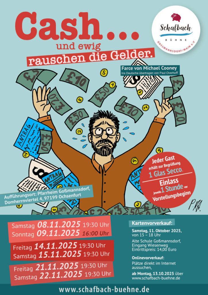 Die Theatergruppe „Schafbach Bühne“ ist eine junge Theatergruppe in Goßmannsdorf am Main. Seit 2019 treffen sich theaterinteressierte Menschen, um Theater zu spielen. Nach einem Weihnachts-Einakter 2019 und der ersten abendfüllenden Komödie „Ein Haschkeks macht noch keinen Sommer“ 2022 brachten die Mitwirkenden der Schafbach Bühne 2023 mit „Einmal Bali und zurück“ ihr drittes Theaterstück und im November 2024 mit der Gaunerkomödie „Bares, Rares – und weg war es“ vom Autorenkollektiv DIE ACHT das vierte Stück auf die Bühne.
